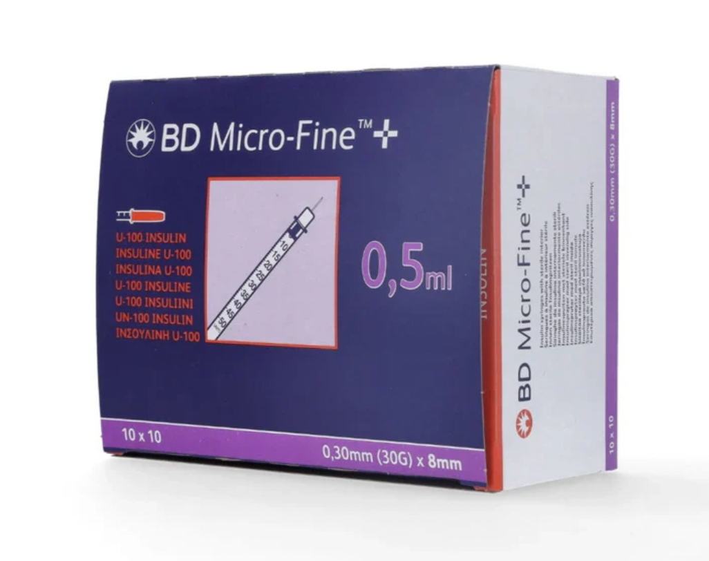 BD Micro-Fine insulin syringe with 30G 8mm needle. Measures 100 units/mL for accurate insulin delivery. Trusted design for comfort & reliability.